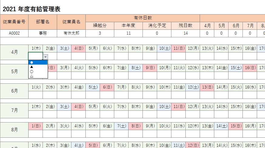 簡単、便利な有休管理テンプレートをぜひご活用ください。